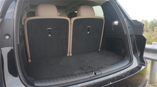 由于乘坐舱足够大,所以第三排的乘坐感的确会比绝大部分的三排座SUV强上不少。尽管车身长度只有5米出头,但在主驾尽可能低而靠后的情况下,二排和三排即便乘坐成年人也都能保证大约一拳半左右的膝部空间;而且二排座椅下方也留足了塞脚的间隙,坐垫的角度倾斜度足够,安装高度也合适,因此大腿不会被悬空,同时也有较好的支撑,除了没有通风之外,包括靠背电调、加热、杯架、USB口也都齐全了。在这样的前提下,尾厢依然保留了接近396L的容积,日常用也不至于太紧张。