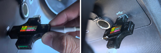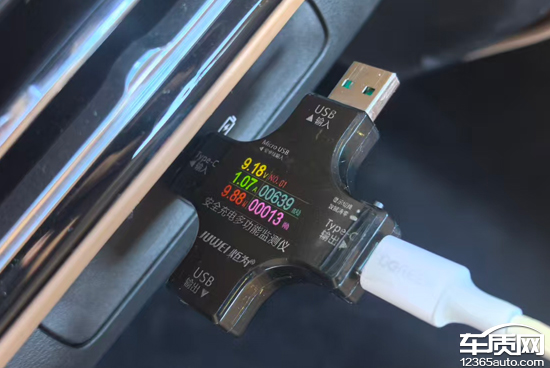 此外,我们对USB接口进行了测试。其中,前排USB Type-C接口充电功率为9.85W,电压为9.18V,电流为1.07A;USB Type-A接口充电功率为8.27W,电压为5.24V,电流为1.58A。后排USB Type-C接口充电功率为9.88W,电压为9.18V,电流为1.07A。
