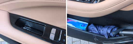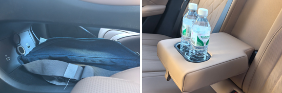 经过实测,除墨镜外,所有固定物品均有合适的储物空间进行摆放,并且位置设计比较合理,拿放物品方便。同时,评测车中控台下方的储物槽空间较大,进一步提升了实用性。