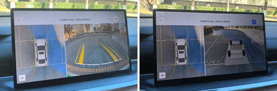 评测车配备了360度全景影像,支持多角度查看,方便驾驶员了解车辆周边情况。经实测,影像显示清晰,车辆周围的畸变控制也在合理范围内,整体表现达到行业平均水平,可以在泊车时给驾驶者提供帮助。