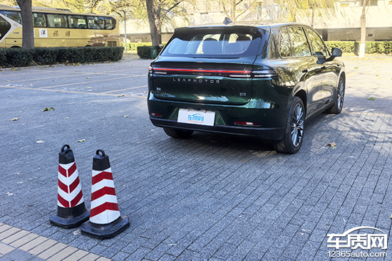 后方视野测试中,依旧将桩桶固定摆放,随后移动车辆直至可以观察到桩桶上沿为止。评测车后方视野所测得的距离为11.056m,在测试过的同级别车型中处于中上游水平。