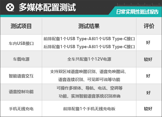 在车内USB接口方面,评测车前排配备1个USB Type-A和1个USB Type-C接口;后排同样配备1个USB Type-A和1个USB Type-C接口,整体数量和接口类型的丰富程度都能令人满意。