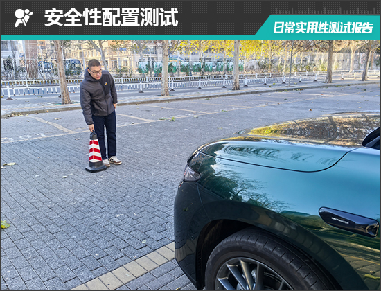 在测试前方视野环节,我们采用高70cm的桩桶作为参照物,随后调整车距,直至在主驾驶位可以看到桩桶上沿。经过测试,桩桶与车头最终测得的数据为3.105m,在测试过的同级别车型中处于中下游水平。