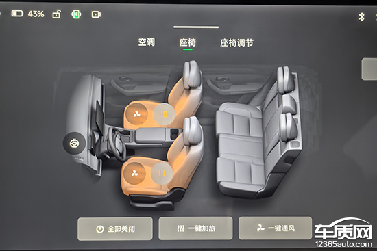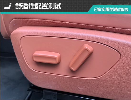 舒适性配置方面,评测车的前排座椅调节按键分别位于主/副驾座椅左右两侧,位置合理且操作便捷。功能方面,前排座椅选装了加热和通风功能,舒适性表现基本令人满意。