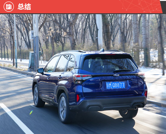 综合以上各项测试结果得出结论,2026款斯巴鲁森林人在客观数据和主观感受方面的整体表现基本达到了专家评审团预期。客观数据层面,个别部位的车身工艺、整车漆膜厚度和喷涂均匀性仍存在提升空间。主观感受层面,扎实的用料以及实用的空间表现均符合其家用SUV的产品定位,平顺的动力输出以及出色的操控性也值得肯定。但前驻车雷达缺失、天窗面积较小等问题仍有待优化。总体来看,2026款斯巴鲁森林人的商品性表现在测试过的同级别车型中处于中游水平。