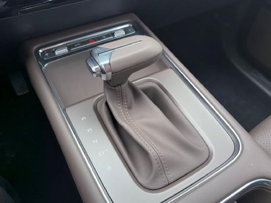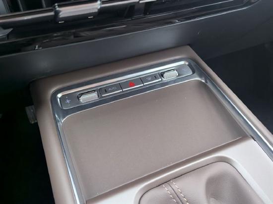 在挡把前方则是设计了车内为数不多的实体按键,在这里我们可以快速的调节空调的温度、风量、前挡除雾等功能,并且后面还有一个手机放置空间,但稍微有点可惜的是,燃油版并没有配备手机无线充电功能,如果能选装上去的话,那也是可以接受的。