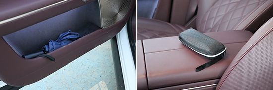 对于车内使用空间的测试,只针对前排触手可及的空间,不包括手套箱、中央扶手箱等需开启的空间。测试方法是将以下固定物品全部放置在前排的各个储物空间内,通过固定物品的放置情况来判断车辆储物空间的表现。测试选定的固定物品为:2瓶常规大小的矿泉水、1部大屏手机、1支口红、1个挎包、1副墨镜、1把折叠雨伞以及1包常规尺寸的抽纸。