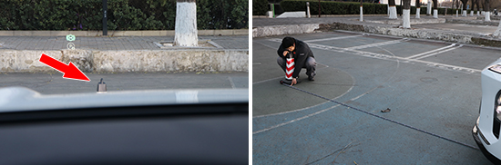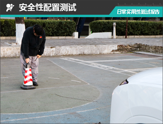 在前方视野测试中,我们采用高70cm的桩桶作为参照物,随后调整车距,直至在主驾驶位可以看到桩桶上沿。经过测试,桩桶与车头最终测得的数据为3.714m,在测试过的同级别车型中处于中下游水平。