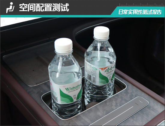 经过实测,评测车的储物数量较多,除墨镜外,其余固定物品均能找到合适的位置放置,整体表现不错。此外,评测车的前排和后排共计提供6个杯架,均配备限位器。