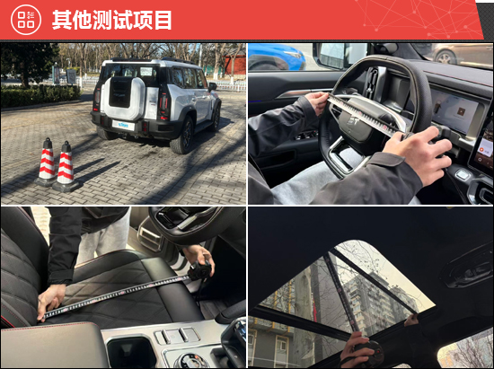 此外,我们还针对驻车雷达、灯光/视野、操控系统、轮胎、天窗、座椅、后备厢进行了测试。经过测试发现,前/后排座椅座垫长度表现出色,尤其是后排,比前排还要长10mm,可以为大腿提供充足的支撑。同时,作为燃油四驱车型,后排地台能够保持全平,值得肯定。此外,评测车配备了朝阳RADIAL SL369 A/T轮胎,拥有出色的非铺装路面行驶能力。