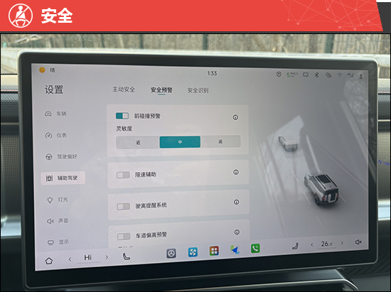 评测车搭载支持全速自适应巡航的L2级辅助驾驶系统,跟车距离支持3档调节,当调整到最近档位时与前车间距较远,容易被其他社会车辆加塞。