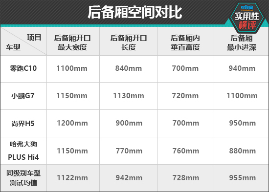 后备厢空间对比