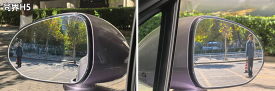 在安全测试环节,我们针对车辆日常使用过程中最常用到的视野范围进行了测量和比对。测试过程中,车内所有座椅均已调整至最低状态,所测出的数据与驾驶者正常使用时均有一些偏差,仅供参考。