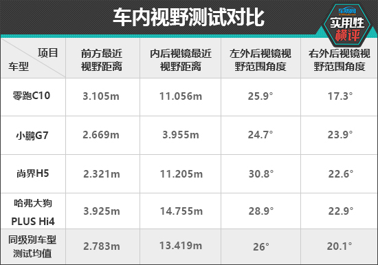 四、车内视野测试对比