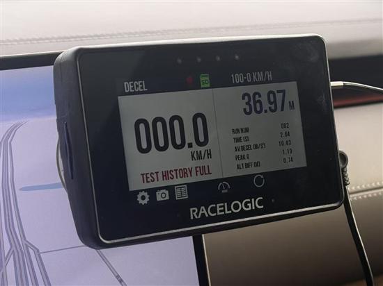 我也试过100-0km/h的全力制动,在ET9试驾车轮胎磨损较多的情况下,可以踩出36.97米的成绩,刹停只用2.64秒,峰值的G值达到1.1G。而且ET9在紧急制动时的全程都很紧绷,电子系统对踏板的影响很小,刹停末端也没有收不住的滑移,站得很稳。