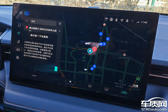 经过实测,系统可以正确执行“打开副驾车窗”指令,且反应速度较快,但无法理解和执行指着副驾车窗说“打开这个”指令。对于“我有点饿了”指令,系统会快速查找附近餐厅,并询问是否需要导航前往,但无法理解“我有点不太舒服”指令,且没有任何回复。对于“导航到北京站东街”这样容易混淆的复杂指令,系统能够排除干扰正确理解;此外,对于“导航到附近大众点评得分4.5分以上的川菜馆”指令,系统也能给出正确的回复。智能交互方面,系统可以正确执行“请介绍一下车质网”指令,通过语音播报和屏幕文字显示两种方式给出相应的答案,但无法理解和执行“广汽丰田锋兰达都有哪些亮点?哪款配置性价比最高?”指令。评测车支持双区域语音唤醒识别、语音连续识别、语音免唤醒词和可见即可说,便利性表现较好,但对于模糊语义的识别还有待提升。