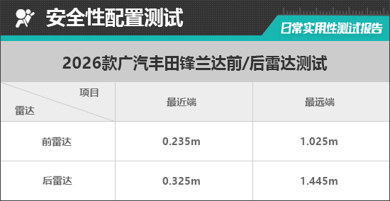 经实测,2026款广汽丰田锋兰达在最小转弯直径和主驾驶座椅调节行程方面表现不俗,但在前、后方视野方面还有待优化。总体来看,2026款广汽丰田锋兰达的实用性表现符合预期,可以满足日常使用所需。