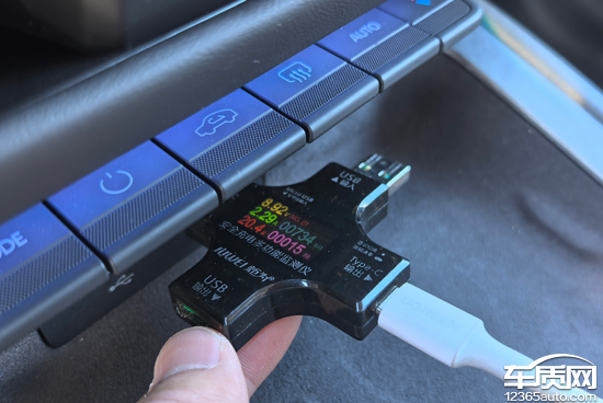 此外,我们对USB接口进行了测试。其中,前排USB Type-C接口充电功率为20.4W,电压为8.92V,电流为2.29A;后排USB Type-C接口充电功率为20.7W,电压为8.56V,电流为2.42A。