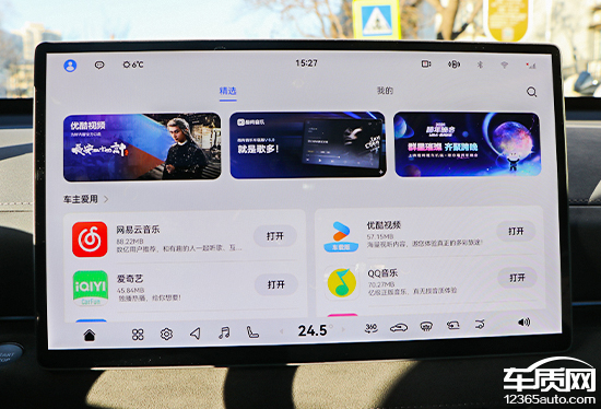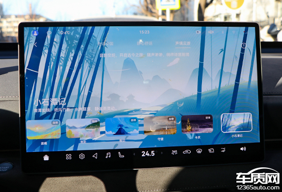 评测车搭载15.6英寸中控屏以及10.25英寸全液晶仪表,均为悬浮式设计,显示效果清晰。虽然暂未查找到屏幕的具体分辨率参数,但整体观感相当出色。车机芯片的型号并未公布,不过操作流畅性并无任何槽点,实测过程中没有出现卡顿情况。