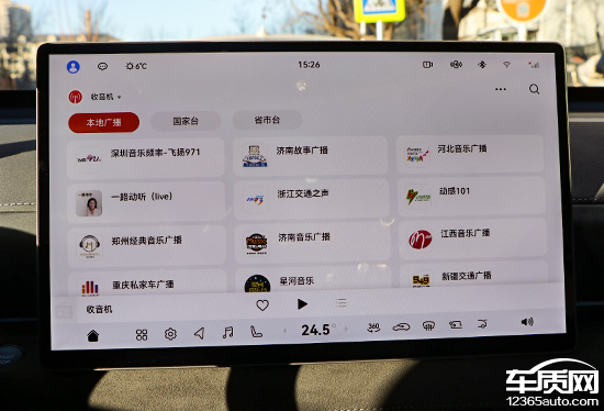 多媒体部分,评测车仅提供网络广播,好在选择相当多,基本能够满足日常使用需求。除了收音机外,还可以选择USB音乐或者蓝牙音乐。此外,影音娱乐类的APP也相当丰富,包括QQ音乐以及网易音乐等,都可以下载使用。