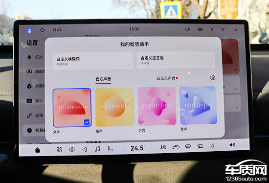语音交互方面,评测车支持语音免唤醒词、四区域唤醒识别、连续识别以及可见即可说,功能性表现可圈可点。此外,系统还支持自定义唤醒词以及应答语。官方声音提供多种选择,另外用户也可以自定义声音。