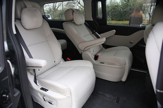 第二排座椅必须给好评,舒适性无需多言,这是MPV车型的命根子。功能方面,两个座椅具备大范围的前后移动能力,而且都是电动调节,可以实现开门迎宾功能,而且无需把座椅向中间横向移动就能退到最靠后的位置,给4座模式留下了十分巨大的乘坐空间,躺平状态下也能让后排乘客把腿伸直。另外,两个座椅也可以通过手动横移实现靠在一起的“亲密模式”,只是下车的时候别忘了挪开,让第三排乘客能下车。