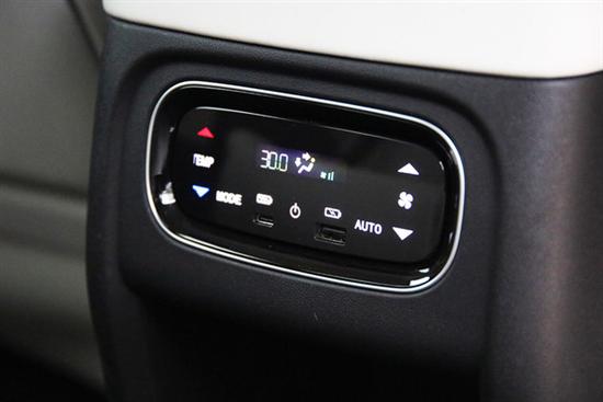 两个二排座椅都具备三挡可调的通风和加热,靠垫也都提供了按摩功能,模式和力度也是多挡可调。后舱的空调控制面板被安排在了前排中间扶手箱的背面,两个有线充电口也在这里。提个建议,把空调控制面板放到车顶上去会更方便操作,尤其是二排乘客躺在座椅上的时候。