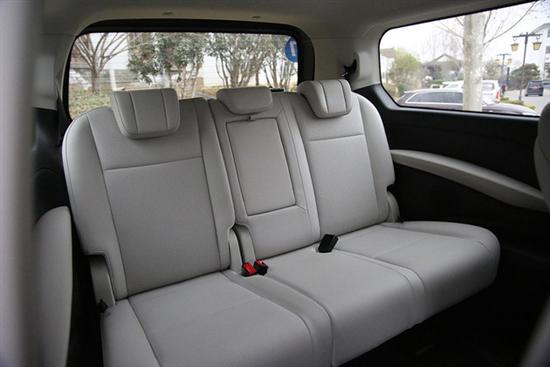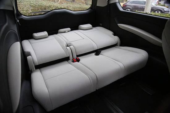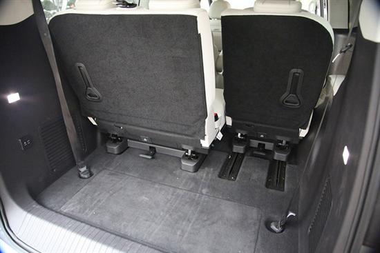 还没完,第三排座椅同样能实现独立的前后移动,只不过完全是手动调节而已。这样灵活的设计能够更好的调节储物和坐人之间的平衡,稍微牺牲一些纵向乘坐空间的话,再多的行李也能放得下,目前极少有MPV能做到这么极致。