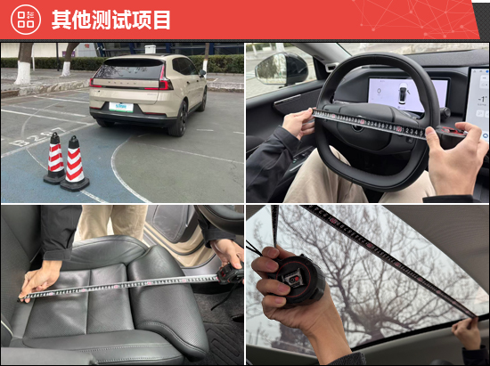 此外,我们还针对驻车雷达、灯光/视野、操控系统、轮胎、天窗、座椅、后备厢进行了测试。经过测试发现,天窗面积占比表现出色,采光效果好,但遗憾的是无法开启。同时,前/后排座椅的座垫长度都不太理想,好在前排座椅支持手动腿托调节,能够缓解腿部支撑不足的情况。此外,评测车配备了固特异e锐乘系列轮胎,在操控、静音与能耗控制方面均有不错表现。