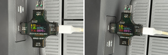 在车内USB接口方面,评测车前排配备2个USB Type-C接口,后排配备2个USB Type-C接口。同时,后备厢提供1个12V电源,便利性不错。此外,我们对USB接口的电压、电流、充电功率进行了测试,其中前排左侧USB Type-C接口的电压、电流、充电功率分别为9.1V、1.3A、11.4W左右,前排右侧USB Type-C接口的电压、电流、充电功率分别达到9.2V、1.7A、15.8W左右;后排左侧USB Type-C接口的电压、电流、充电功率分别达到9.3V、2.2A、20.1W左右,后排右侧USB Type-C接口的电压、电流、充电功率分别达到9.1V、1.2A、11.4W左右。