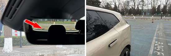 评测车左外后视镜采用双曲率镜片,右侧为普通镜片。经实测,左、右外后视镜视野范围分别为33.1°和24.8°,分别处于同级别上游和同级别中上游水准。