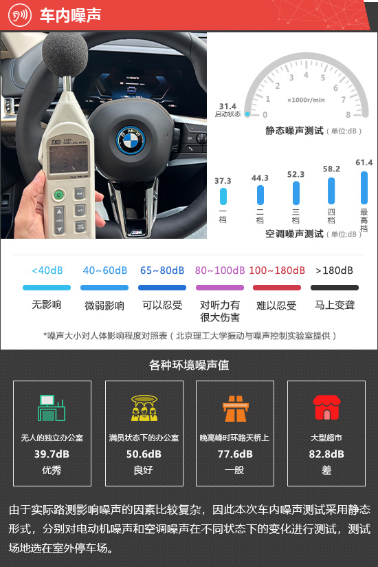 在静态噪声测试环节,评测车在启动状态下车内实测噪声值为31.4dB,在测试过的同级别车型中处于中上游水平。