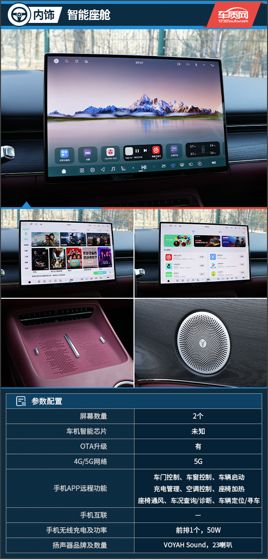 智能化层面,岚图追光 L全系标配鸿蒙座舱5.0,车机系统不仅响应迅速,还支持多模态语音助手,可通过语音、视觉等不同维度的感知技术,识别乘客身份,精准理解需求。中控台前方设置了两个手机槽,拿放手机十分顺手,左侧还具备50W无线充电功能。此外,评测车还配备VOYAH Sound殿堂级音响,拥有23个喇叭,音质表现出众。