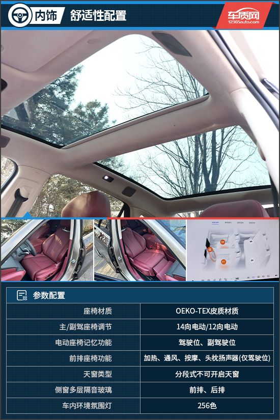 乘坐空间方面,凭借89.4%的超大得房率,车内空间十分宽裕,175cm的乘客无论是在前后排,都有着充裕的乘坐空间。并且豪华云朵座椅采用了10层人体工学舒适化结构,拥有35mm快慢回弹海绵设计,久坐不累,后排座椅也具备加热、通风以及按摩功能,再加上几乎纯平的地台,整体乘坐体验颇为舒适。