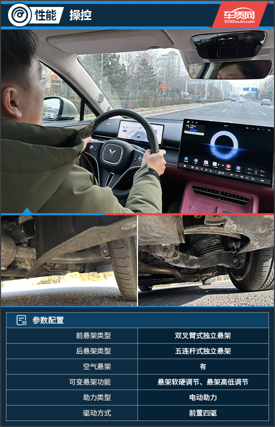 实际体验上,得益于双电机的加持,评测车的起步十分轻快,完全不像是驾驶一台中大型车,动力随踩随有,4.8秒的零百加速成绩令日常并线超车游刃有余。