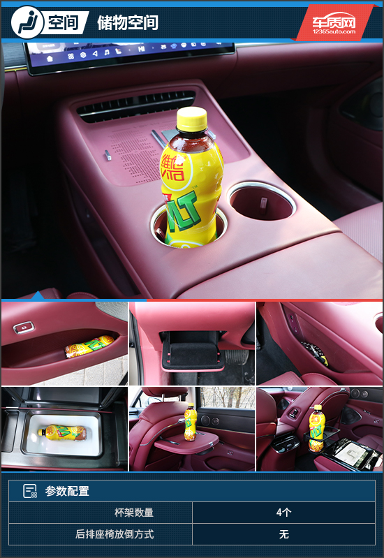储物空间方面,评测车提供了4个杯架,可以很好地满足车内乘客的使用需求。此外,除了常规的储物空间,中控台下方还设置了两个储物格,可以放置发票等零碎物品。值得一提的是,中央扶手箱内置6.6L智能冷暖冰箱,不仅容积可观,还拥有-6℃-50℃的超宽温域,颇为实用。
