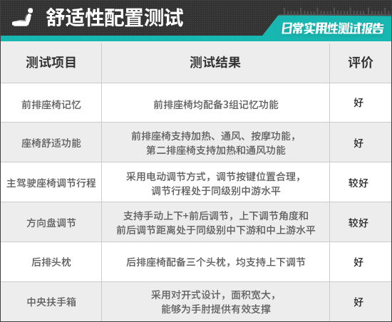 二、舒适性配置测试