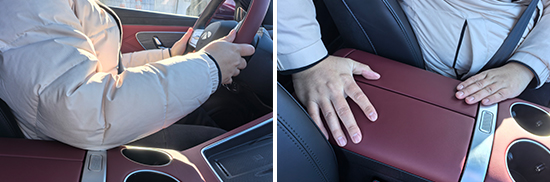 前排中央扶手箱采用对开式设计,不仅面积宽大,而且表面还采用了软质材料进行包裹,触感舒适。正常驾驶坐姿下,其能够为驾驶员的手肘提供有效支撑。