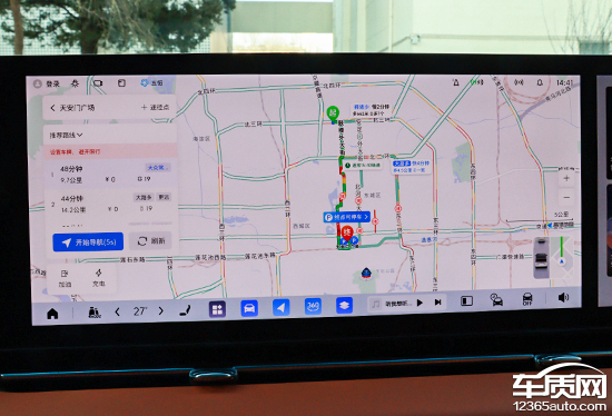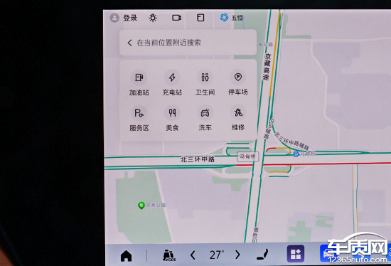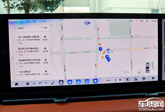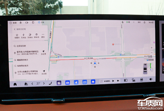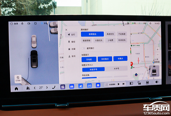 评测车内置高德地图,操作便利性和功能性都无须多言。搜索栏位于左上角,支持多种输入方式。此外,系统内还预设了丰富的快捷目的地选择,例如加油站、充电站、停车场以及美食等,实用性表现可圈可点。