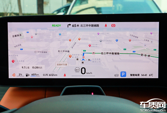 评测车搭载10.25英寸全液晶仪表,右侧分别为16.3英寸的中控屏以及副驾娱乐屏,均拥有莱茵TUV低蓝光护眼认证。虽然由于物理分割的黑边存在,导致其整体视觉效果不如一体式屏幕那样震撼,但是依然营造出了很强的科技感。根据官网资料显示,这颗高通骁龙8775芯片拥有72TOPS的超高AI算力,实测车机系统操作流畅度表现优异,并未出现死机或卡顿情况。