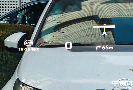评测车配备50英寸AR-HUD增强现实抬头显示,提供AR视图、媒体视图以及简洁视图3种选择,支持15组驾驶数据融合。系统内提供抬头显示调节页面,开启后,包括常规的高度、亮度以及角度,都可以通过方向盘右侧的按键进行调节。