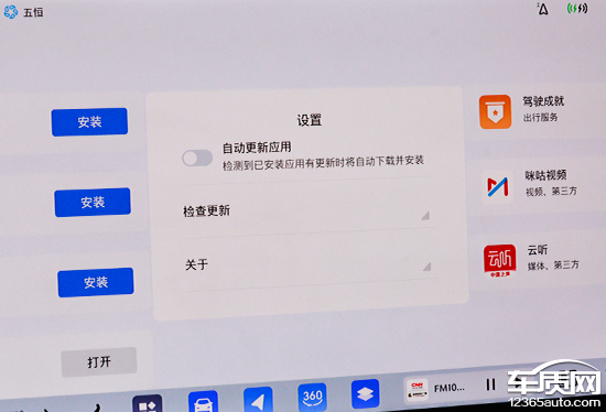 车机系统内置应用市场,实测APP的数量和类别都比较丰富,基本能够满足用户的日常使用需求。设置界面非常简单,值得关注的是其提供了一个“自动更新应用”开关,开启后系统会自动检测已安装应用,若有更新便会自动下载并安装。