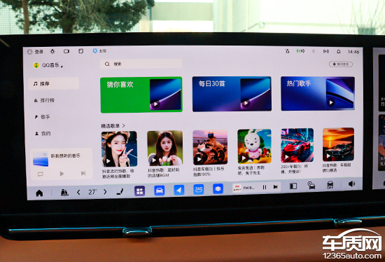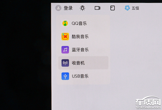 多媒体部分,评测车内置FM/AM广播以及网络广播,界面设计简约清爽,基本不需要任何学习成本就能轻松上手。此外,列表内还提供了丰富的多媒体选择,包括蓝牙音乐、USB音乐、QQ音乐以及酷我音乐。