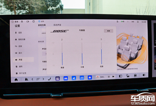 评测车搭载BOSE悦享音响系统,配备16个扬声器。虽然对于一台中大型MPV来说,这个扬声器数量确实不算很多,但是实际听感值得肯定。软件方面,系统提供了丰富的调节内容,包括声场模式、声场平衡以及均衡器。总体来看,只要不是“发烧级”用户,对于这套音响系统应该都能感到满意。