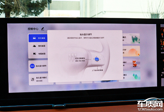 评测车配备50英寸AR-HUD增强现实抬头显示,提供AR视图、媒体视图以及简洁视图3种选择,支持15组驾驶数据融合。系统内提供抬头显示调节页面,开启后,包括常规的高度、亮度以及角度,都可以通过方向盘右侧的按键进行调节。