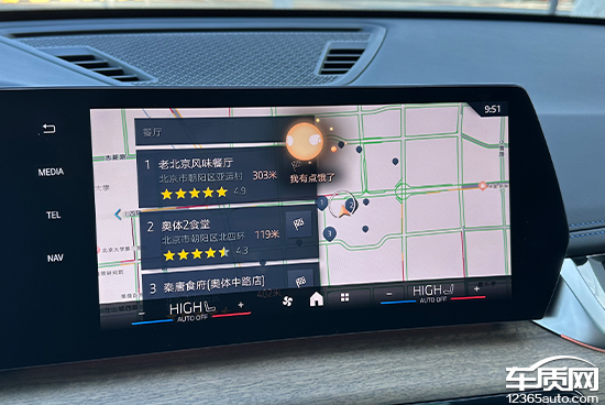 经过实测,系统可以正确执行“打开副驾车窗”指令,且反应速度较快,但无法理解和执行指着副驾车窗说“打开这个”指令。对于“我有点饿了”指令,系统会快速查找附近餐厅,并询问是否需要导航前往,但无法理解“我有点不太舒服”指令,且没有任何回复。对于“导航到北京站东街”这样容易混淆的复杂指令,系统能够排除干扰正确理解;此外,对于“导航到附近大众点评得分4.5分以上的川菜馆”指令,系统也能给出正确的回复。智能交互方面,系统无法理解指令7和指令8,且没有任何回复。此外,评测车还支持单区域语音唤醒识别、语音免唤醒词、语音连续识别以及可见即可说,便利性表现较好。