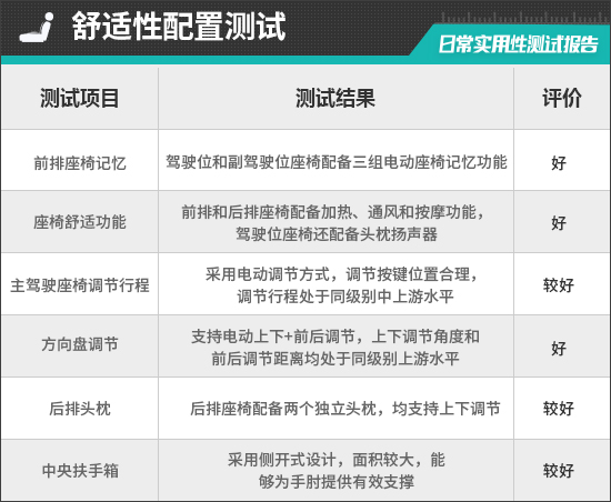二、舒适性配置测试