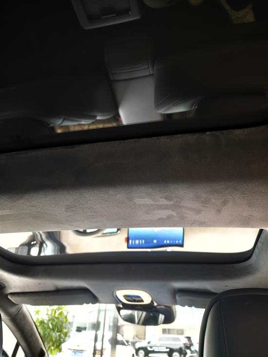 如果躺椅不打开,以我170cm的身高大约是3拳的腿部空间,头顶距离这个被翻毛皮包裹的车顶横梁大约有4指;躺椅打开后,腿部空间会缩小一些,但整个身体会以一种很舒服的姿态舒展开。前排座椅背后应该也布置了气囊,我在副驾背面发现了AIRBAG的字样。