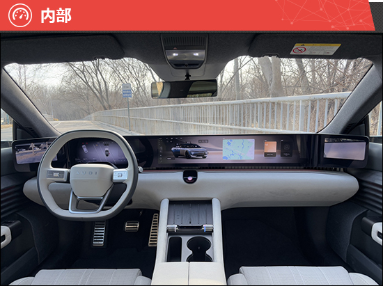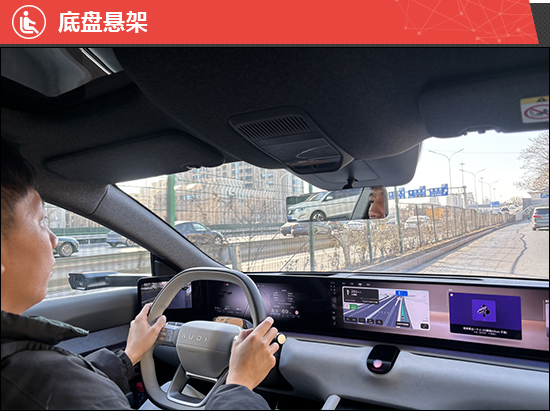 评测车搭载双电机四驱系统,总功率579kW,总扭矩800N·m,CLTC纯电续航里程为647km。实际驾驶感受,电动机充沛的动力储备带来了随叫随到的迅捷响应,加速感充盈而直接。同时,加速踏板的调校极为线性,实现了对车速细腻且精准地掌控,驾驶起来收放自如。