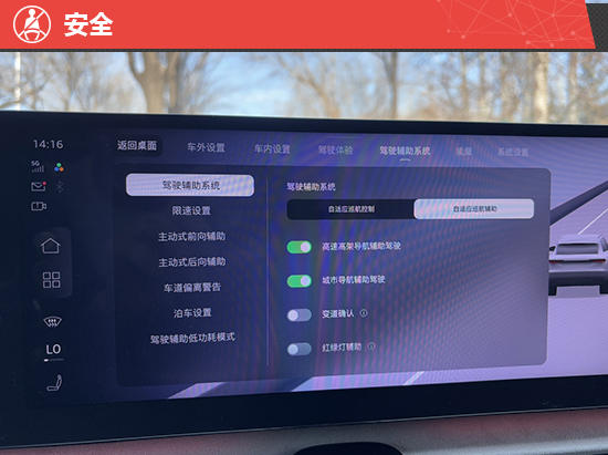 评测车搭载奥迪与Momenta联合打造的L2级全景辅助驾驶,跟车距离支持3档调节,当调整到最近档位时与前车间距适中,不容易被其他社会车辆加塞。
